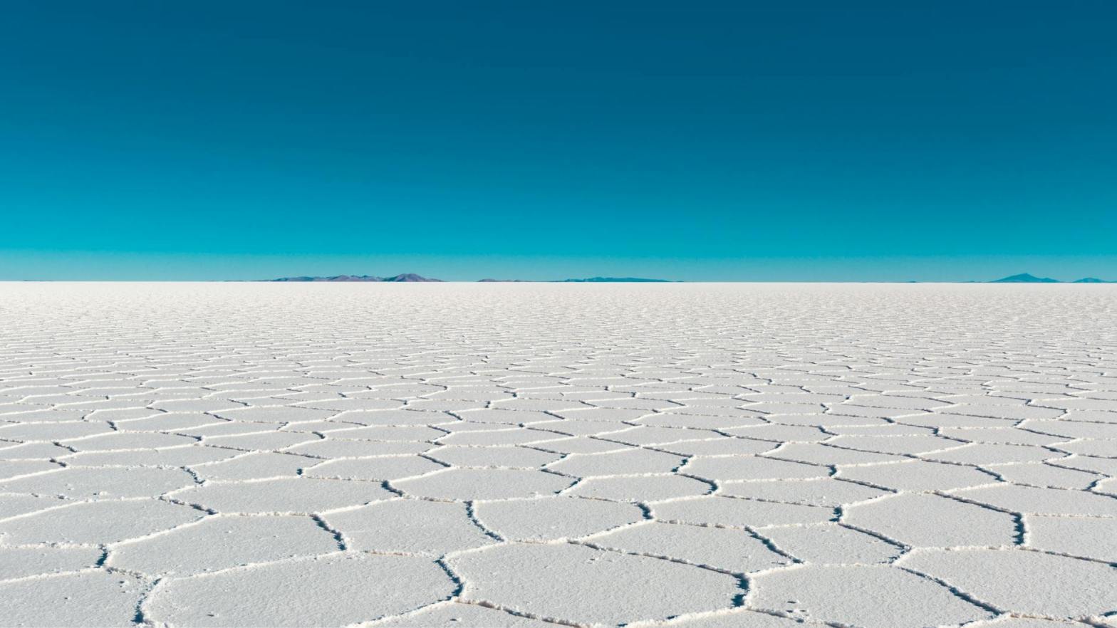 while fields of salt beneath the sun flare white.